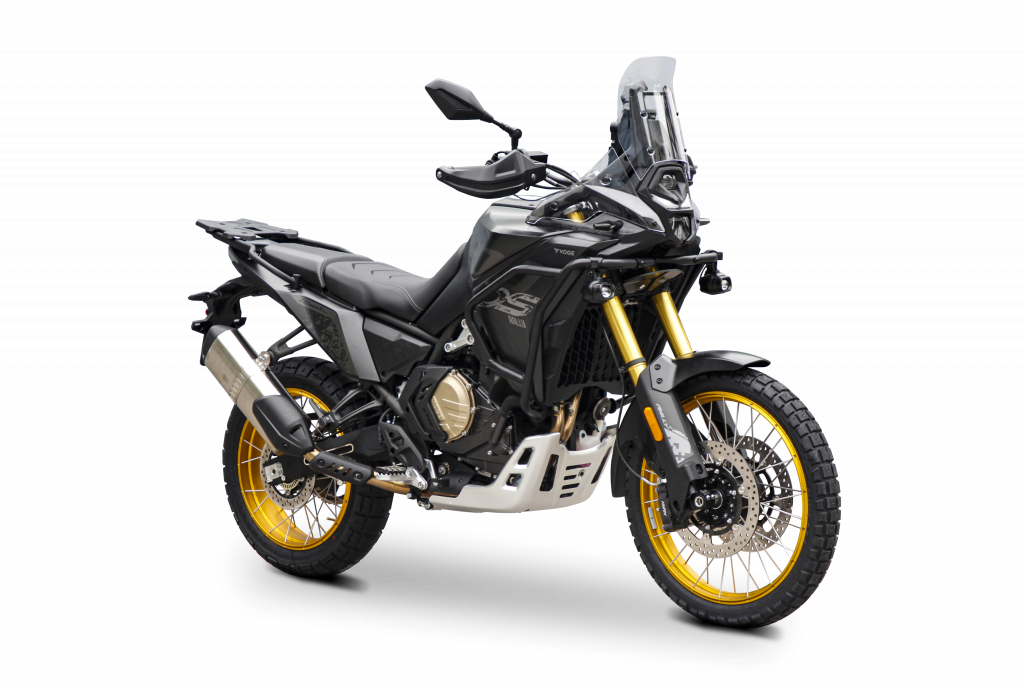 De série : porte-bagages renforcé, protections moteur métalliques, compatibilité valises + top-case.