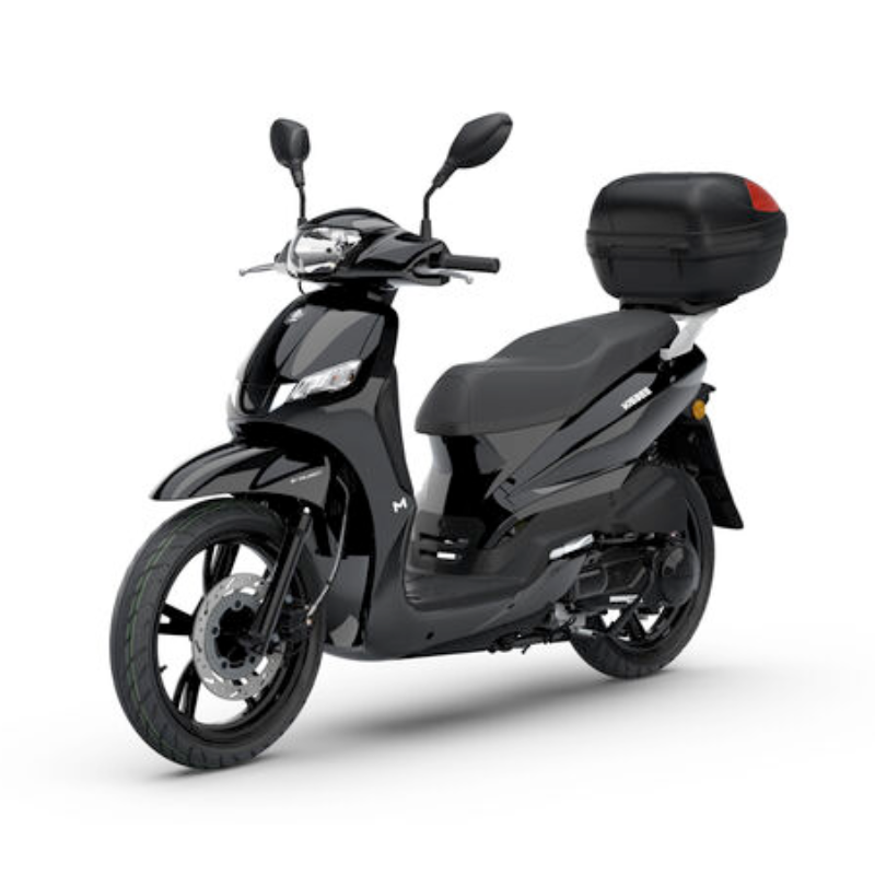Pour seulement 50 € de plus, le Kisbee M s’équipe d’un top case 35L intégré, conçu à 90 % de matériaux recyclés. Emportez casque intégral et essentiels du quotidien en toute sérénité grâce à son système d’étanchéité breveté. Son design aérodynamique et son enjoliveur texturé ajoutent une touche dynamique.