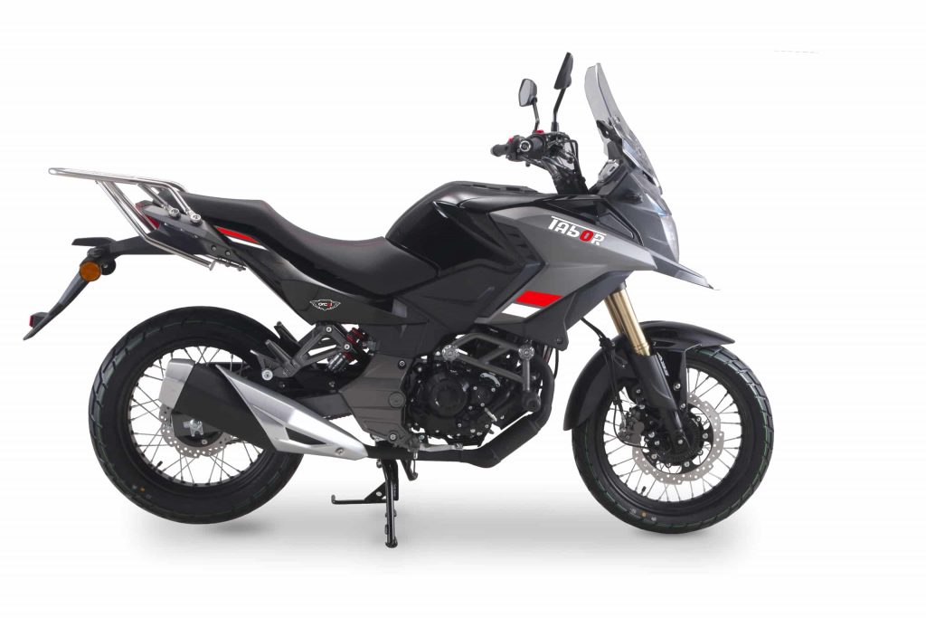 Concernant le système de freinage, le Tabor propose un disque à l’avant et l’arrière combinés à un ABS Bosch à double canal. Ce trail 125cc est monté en pneus mixtes de 17 pouces à l’avant et l’arrière montés sur des roues à rayons. Un Look « Trail Aventure » tout en demeurant accessible à tous et toutes, sa hauteur de selle est de 775 mmm.